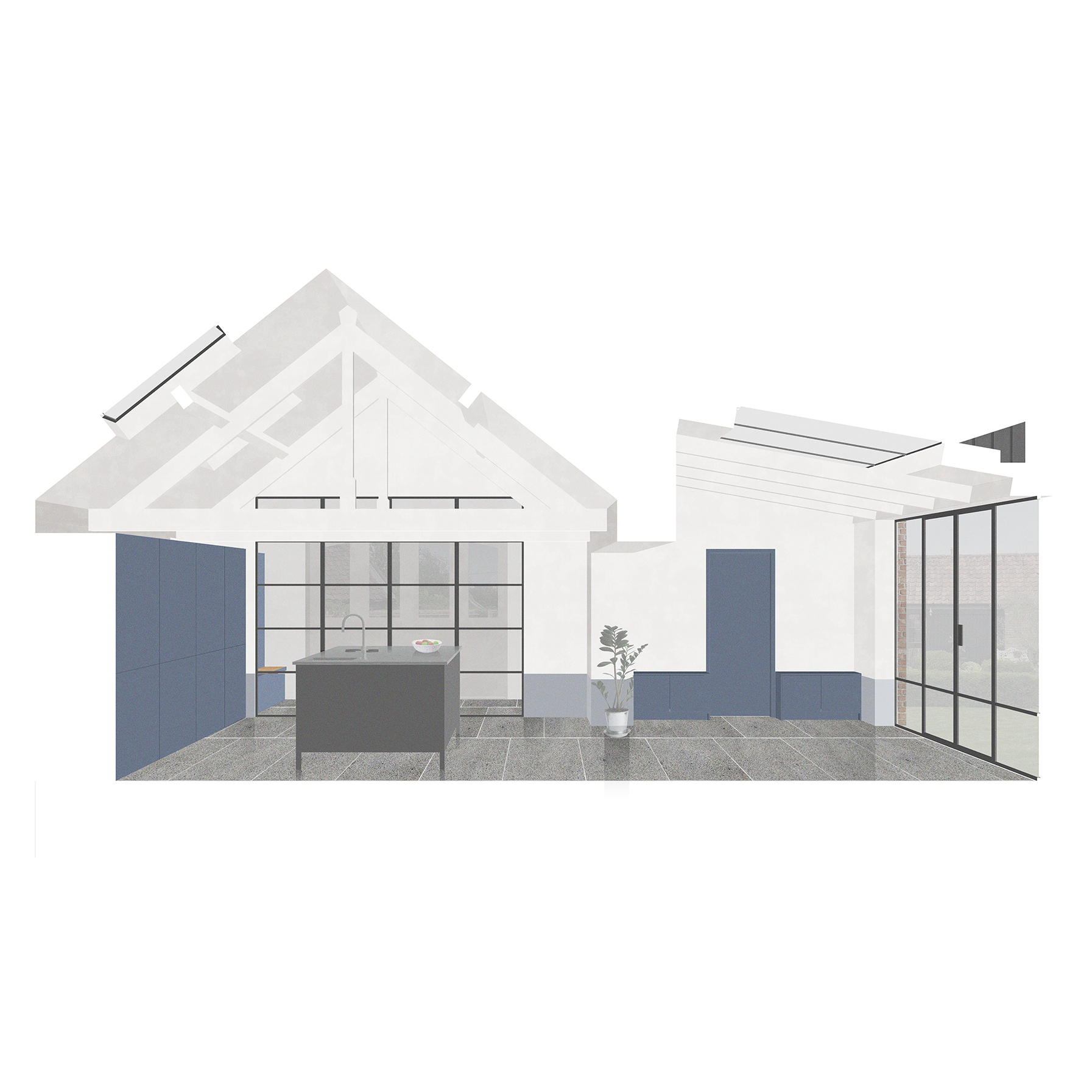 The design strategy was one of small interventions. A simple extension to the courtyard side of the block, allows the opening-up and reorientation of the kitchen. Subsequently, a much-needed dedicated lobby and a utility room are provided, and the circulation to the adjacent living and dining rooms is rationalised and improved.